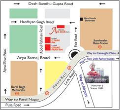 To Reach us : After Reaching the 108 Feet Statue of Lord Hanuman at Pusa Road Circle, Enter Karol Bagh (Ajmal Khan Road/Arya Samaj Road) and take first Right Turn.